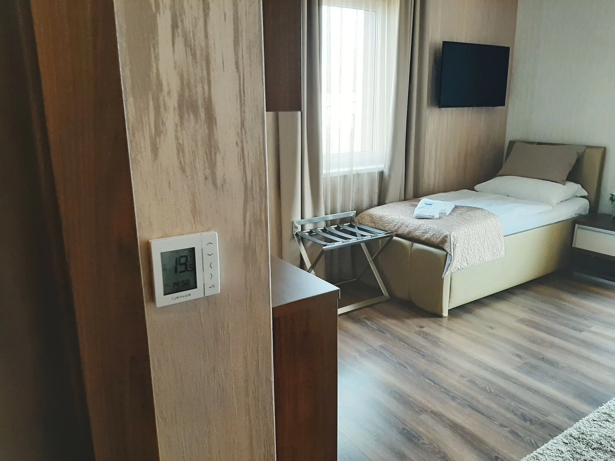 Pro Hotel Villa Dunaj v Dunajské Stredě jsme realizovali dodávku a instalaci pokojových termostatů SALUS 🌡️, které slouží k přesné regulaci vytápění v jednotlivých hotelových pokojích. Cílem instalace bylo zajistit hostům příjemné a stabilní teplotní podmínky během jejich pobytu a zároveň nabídnout hotelu efektivní řešení pro řízení vytápění.